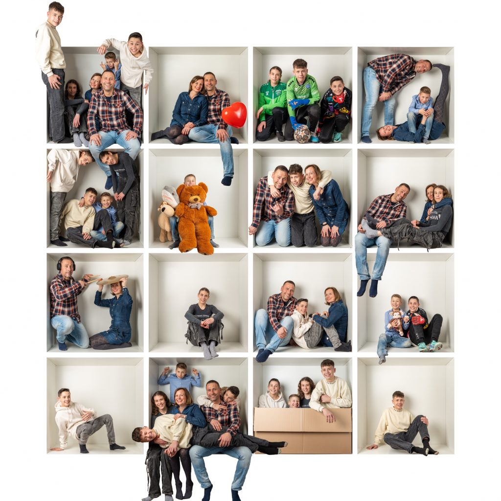 Ihr sucht nach Familienbildern der etwas anderen Art? In meiner ‚Kiste‘ entstehen lustige, dynamische Collagen, bei denen Interaktion gefragt ist. Ein Riesenspaß für Kinder und das perfekte Motiv für Eure Wohnzimmerwand!