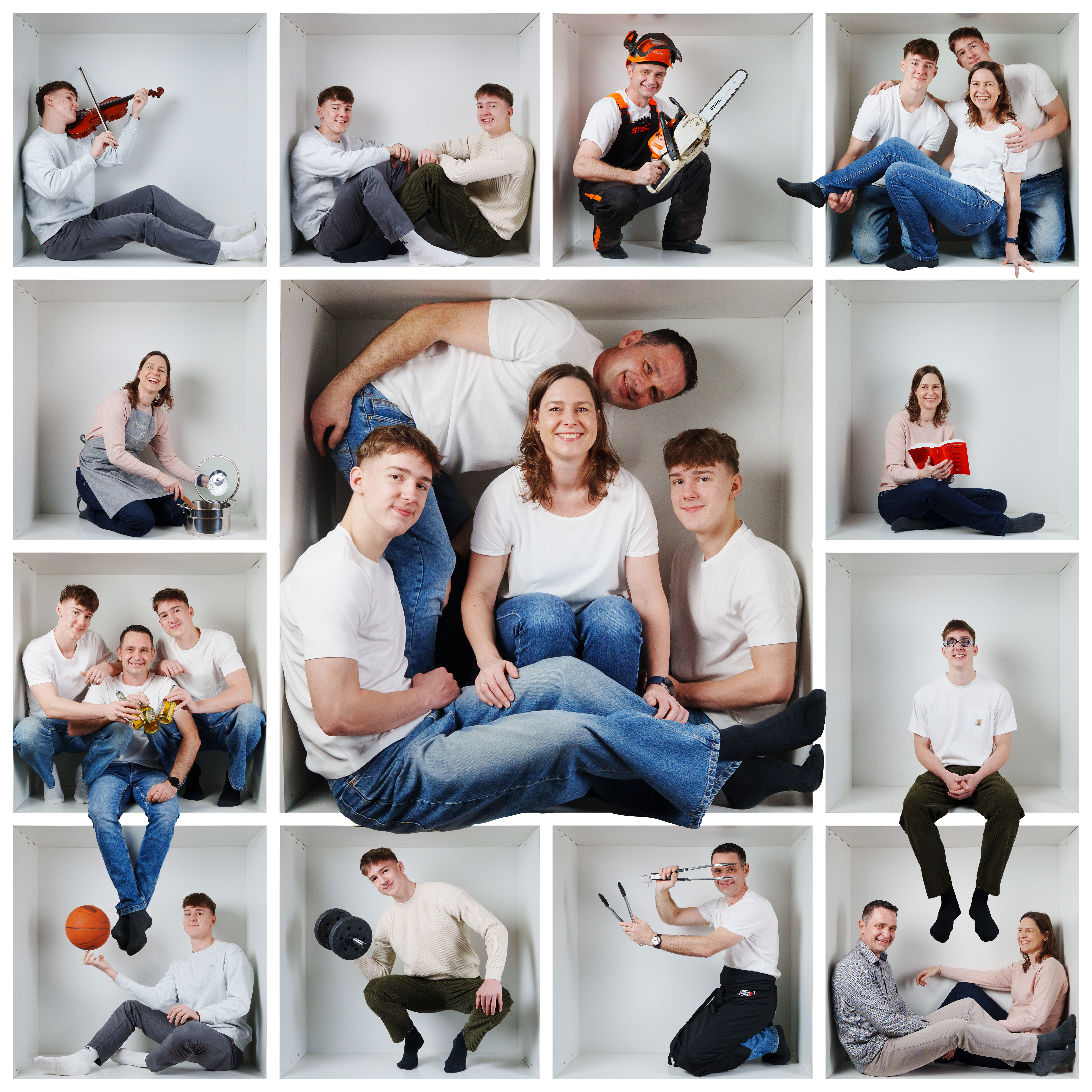 Du suchst nach einem Familienfoto, das alles andere als gewöhnlich ist? Beim Kistenshooting (auch bekannt als Inside the Box Photography) wird ein einfaches Fotoshooting zu einem kreativen Abenteuer. Ob im Team, als Familie oder mit Deinem Haustier – die weiße Box ist Eure Bühne!